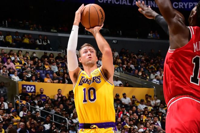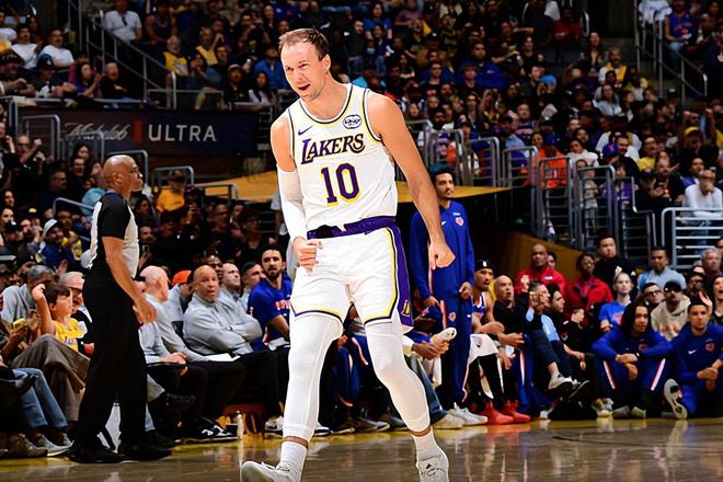 本场比赛中,湖人虽然取得了比赛的胜利,但是球队的替补后场大将卢克-肯纳德(Luke Kennard)的表现并不理想。肯纳德全场出场19分38秒,投篮7中1,三分线外5中1,得到了3分1篮板2助攻2抢断1盖帽的数据,还有2次犯规,正负值为-13。肯纳德在本场比赛中的表现可以说是惨不忍睹,他在进攻端完全没有找到自己手感,他在得分和投篮方面的表现都是令人非常失望的。他其实也得到了不少出手机会,但是他只命中了1记三分,在场上疯狂打铁,而且他也没有展现出自己在传球和组织方面的才能,而且他在防守端的表现也是令人非常失望的。总体来看,肯纳德在本场比赛中的效果实在是有些糟糕,这也导致了球队第二阵容竞争力严重不足,-13的正负值也能够说明他在场上的效果有多糟糕。