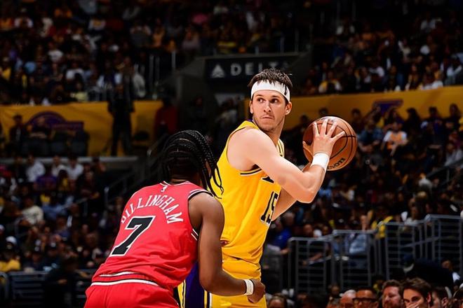 本场比赛中,湖人的先发后场大将奥斯汀-里夫斯(Austin Reaves)也是延续了最近一段时间的出色状态。里夫斯全场出场38分33秒,投篮20中13,三分线外7中4,得到了30分5篮板7助攻1抢断的数据,还有3次失误和2次犯规,正负值更是达到了全场最高的+18。里夫斯在进攻端又一次大杀四方,他展现出了相当不错的得分能力,他在进攻端的功能也是非常全面的。里夫斯在进攻端不断通过突破完成得分,他也有着很强的终结能力,他在外线投篮方面的表现也是值得肯定的。值得关注的是,里夫斯在本场比赛中甚至没有得到1次罚球机会,但是他却在这种情况下依然得到了30分,足以说明他在场上的作用。除此之外,里夫斯也能够在传球和组织方面有所发挥,他在防守端也没有出现什么太大的问题,他在场上的效果非常出色,这也是球队能够战胜对手的关键因素。