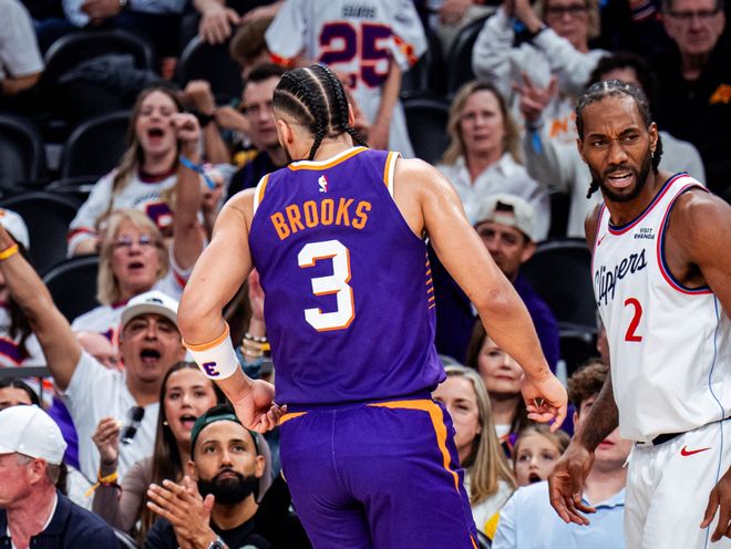 6个月前,ESPN对联盟球队进行实力分级时,太阳是和篮网、奇才、爵士一档,排名综合实力第24位,典型的摆烂坦克大队。毕竟送走了比尔和杜兰特,换来的杰伦格林包括布鲁克斯,其实都像是摸奖,搞不好就砸手里了。但是6个月后,再看太阳战绩,他们暂时只落后第三名的湖人2个胜场,落后火箭1.5个胜场!准确来说,过去3个月,他们同期战绩不比湖人和火箭差!那这支球队强在哪里呢?首先球队老大布克,本赛季缺阵了16场比赛,布鲁克斯又因酒驾被捕,杰伦格林本赛季缺阵了48场比赛,名义上的三巨头,基本没怎么合体过。