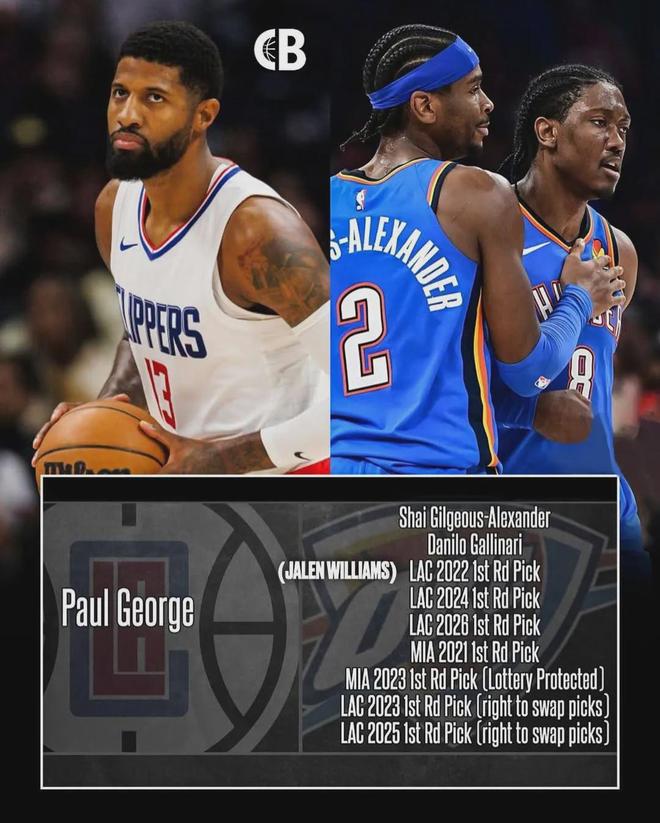 NBA评论员Skip评论道:“看到SGA的表现,快船的球迷们现在肯定在唉声叹气了。”2019年夏天,快船9换1交易得到保罗-乔治,包括5个首轮签和2个首轮互换权,快船至今仍然欠着雷霆1个首轮(2026),到今年夏天才算正式还清。