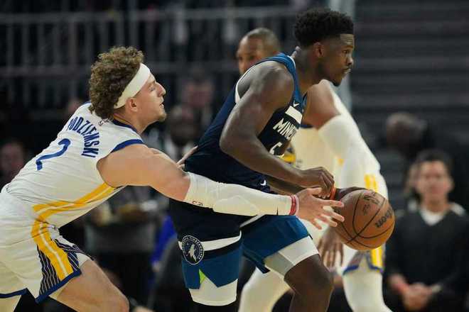 北京时间3月14日,NBA常规赛勇士主场对阵森林狼,波尔津吉斯迎来加盟勇士首次首发比赛。勇士攻防两端惨遭碾压,霍福德与小库里均因伤退赛,勇士在下半场开局被拉开落后25分差距。波杰姆斯基与波尔津吉斯率领勇士顽强反扑追到差7分,爱德华兹率队重新扩大两位数优势,最终勇士117-127输给森林狼遭遇4连败,森林狼结束3连败。