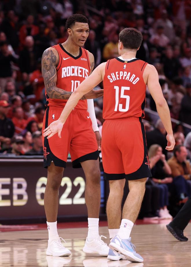 虽然本场比赛火箭队的第一功臣是最后时刻投进两分的杜兰特,还有在最后一分钟投进了一记关键三分的小贾巴里史密斯,但是在常规时间里,火箭队21岁的新射手里德谢泼德表现也不差。他成为了火箭队第二阵容的最佳球员,本赛季谢泼德完全有机会成为联盟当中的最佳第6人,他也是最佳第6人的热门人选之一。