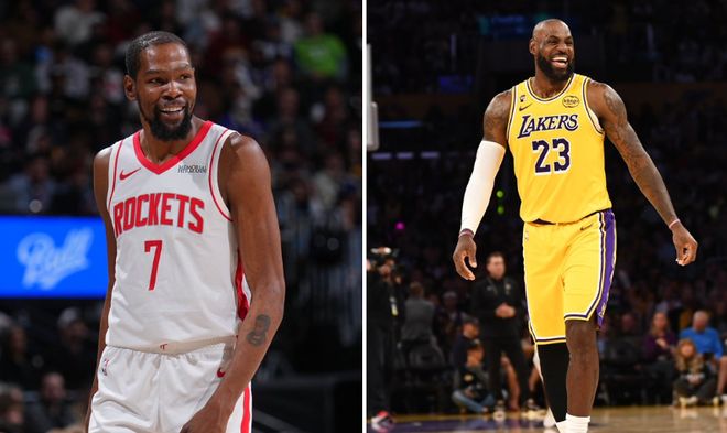 湖人今天的对手是火箭,NBA官方也为本场比赛预热:“得分王者对决:詹姆斯与杜兰特将在三天内两次交锋。洛杉矶湖人队已经取得五连胜,将迎战休斯敦火箭队,两天后同一时间将再次对决。两人常规赛总得分超过75,000分(43162+32206),詹姆斯是NBA历史得分王,而杜兰特(排名第6)仅差87分即可超越迈克尔·乔丹升至第五位。目前西部排名第三的湖人队和第四的火箭队仅相差半个胜场。”