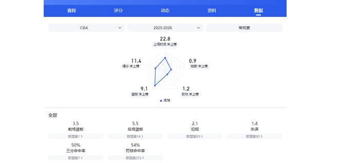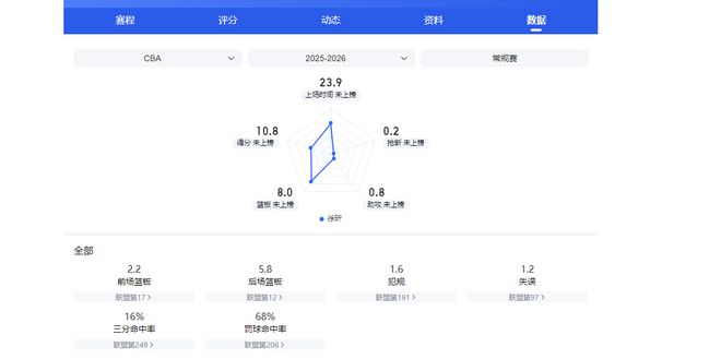 胡金秋的得分数据是本土四大中锋里最为出色,但篮板和盖帽等数据暂时垫底。这一数据表现也基本反映出来他能攻不擅守的特点。