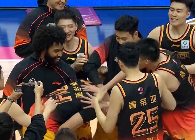面对着广东队,江苏队可以说是收获了一个巨大的意外之喜,没错,那就是击败了广东队,笑到了最后。毫无疑问,这场比赛胜利,是江苏队本赛季,收获最大的一场比赛胜利!因此, 在赛后,江苏队球员如同夺冠一样,大家在不断进行庆祝!
