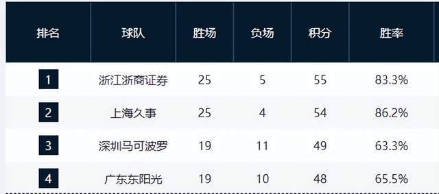 青岛队(17胜12负)、浙江队(16胜13负)分列第七、第八,近期连败后优势缩水。辽宁队以16胜13负升至第九,近8战7胜,展现出强劲复苏态势,八强席位触手可及。宁波队(15胜14负)、山西队(15胜14负)紧咬季后赛边缘。