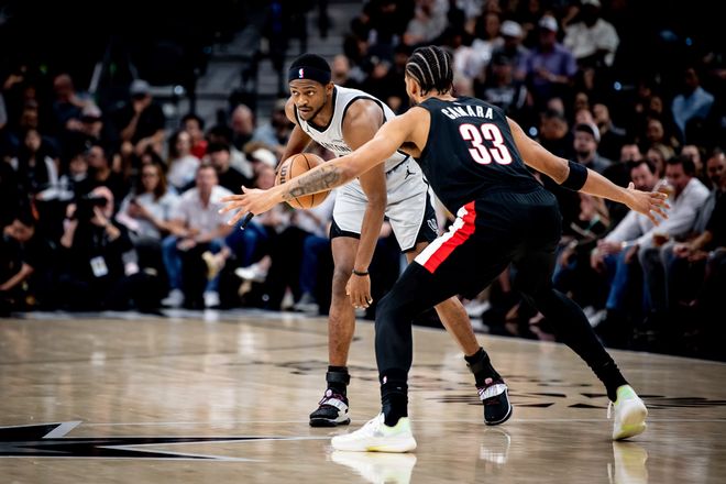 马刺队的福克斯得到25分、5个篮板和7次助攻,约翰逊得到20分和8个篮板,布莱恩特得到17分、5个篮板和4次助攻,瓦塞尔得到14分和8个篮板,哈珀得到13分和6个篮板,科内特得到10分、5个篮板和6次助攻。开拓者队的阿夫迪亚得到29分、6个篮板和6次助攻,亨德森得到20分,卡马拉得到18分、4个篮板和6次助攻,霍勒迪得到13分、9个篮板和7次助攻,克林根得到11分、11个篮板和5次助攻。
