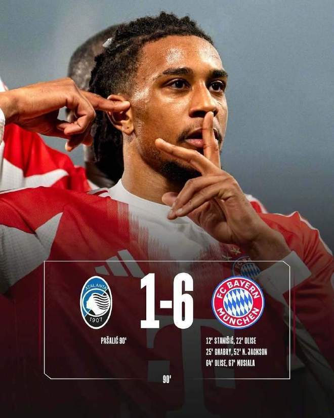 从本场比赛的进程来看,这根本不是一场势均力敌的对抗,而是一场成年队对青年队的教学赛。开场仅12分钟,斯塔尼希奇就通过角球战术成功偷袭敲开了亚特兰大的大门,那一刻,潘多拉的魔盒就此打开。此后奥利塞这位拜仁的“左脚魔术师”,在本场比赛中彻底杀疯了。传射建功、内切兜射,他把亚特兰大的防线过得像清晨的马路,一个人就刷爆了进攻数据。格纳布里、雅克松、穆西亚拉轮番开火,整个下半场,拜仁简直是在进行半场攻防演练。