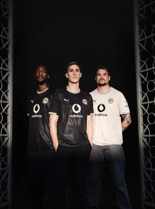 这款特别球衣的设计灵感直接来源于“红土地”球场本身。球衣整体以黑色为主色调,并融入带有泥土质感的设计元素,面料纹理中还加入了球场标志性大门的图案,象征着这座历史球场的入口。与此同时,球衣上使用的是经过重新配色处理的旧版多特蒙德队徽,在队徽细节中还隐藏了象征球场墙体的设计纹理,整体风格充满历史感。
