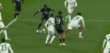 比赛随后进入拉锯战。上半场结束前,登贝莱终于展现出金球先生的实力。他在禁区内连续摆脱两名防守球员,低射破门,大巴黎2-1进入中场休息。