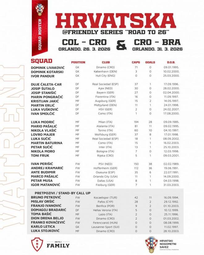 消息来源:克罗地亚国家队官方