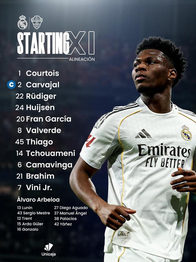 北京时间3月15日4:00,西甲第28轮继续进行,皇家马德里坐镇伯纳乌球场迎战埃尔切,本场主裁判为希尔-曼萨诺,赛前双方首发出炉。