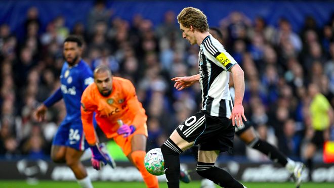 上半场补时阶段,纽卡斯尔打出流畅配合,拉姆塞的射门打在防守球员腿上有变向,桑切斯一招太极推手,将球挡出。