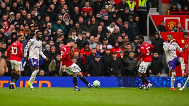 第53分钟,曼联获得角球,B费主罚,卡塞米罗在3名维拉球员的夹击下,抢到落点头槌破门。
