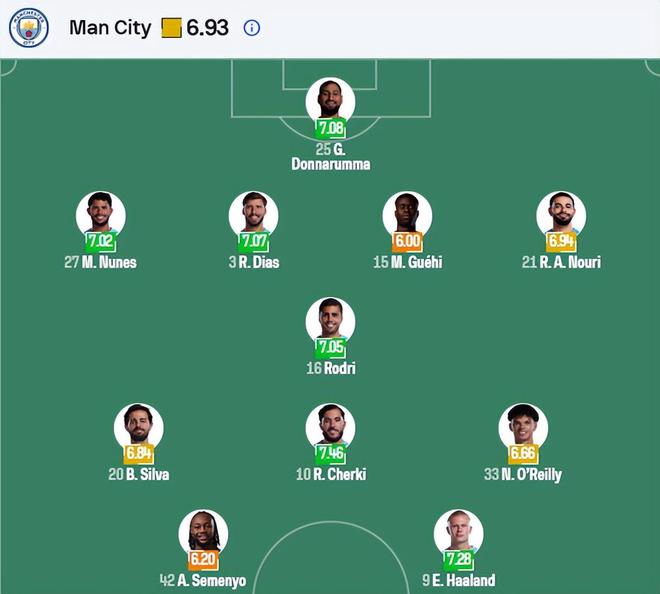 曼城(4-2-3-1):多纳鲁马;努内斯、鲁本·迪亚斯、格伊、艾特-努里;罗德里、奥赖利;塞梅尼奥、伯纳多·席尔瓦、谢尔基;哈兰德。格瓦迪奥尔、刘易斯伤缺,萨维尼奥出战难讲。