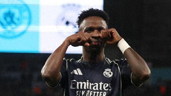 然而,赛后关注的焦点并非比分,而是维尼修斯的庆祝方式。进球后,这位巴西球星径直走向曼城看台,先是将手指竖在唇边做出“闭嘴”的手势,随后又做出了极具挑衅意味的“哭泣”动作,直接嘲讽主场球迷。