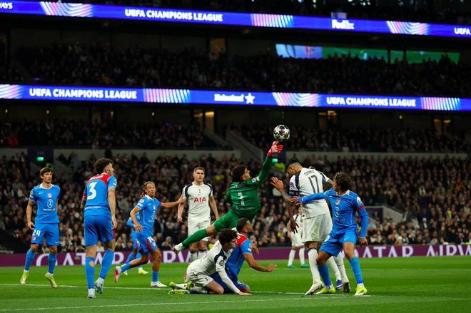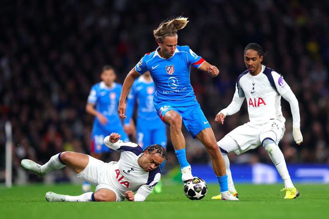 上半场尾声阶段,马竞的进攻逐渐对热刺的球门制造威胁,先是阿尔瓦雷斯的远射被挡了一下,皮球擦着横梁稍稍高出。