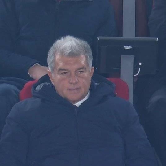 目睹此场景,刚刚成功连任巴萨主席的拉波尔塔在看台上露出了有些郁闷的表情。