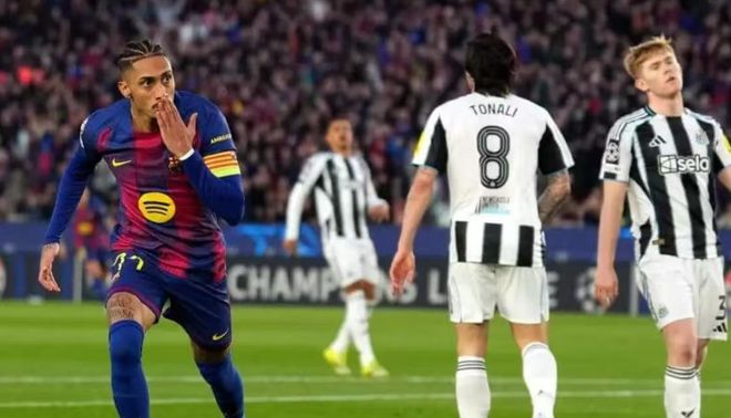 如果说第一阶段是英超球队强势,那么进入1/8决赛就是西甲球队发挥出色,一共有3支球队晋级了前八!巴萨主场对阵纽卡斯尔联大开大合,上半场巴萨依靠拉菲尼亚和贝尔纳尔的进球两次领先,埃兰加救主梅开二度,两次扳平。伤停补时拉菲尼亚造点,亚马尔点射破门,巴萨第三次领先。到了下半场,纽卡斯尔联崩盘,巴萨连入4球,费尔明、莱万(2球)、拉菲尼亚破门,最终巴萨7-2大胜纽卡斯尔联,拉菲尼亚一人造了5球。算上第一回合1-1的比分,巴萨8-3强势淘汰纽卡斯尔联,顺利晋级前八。