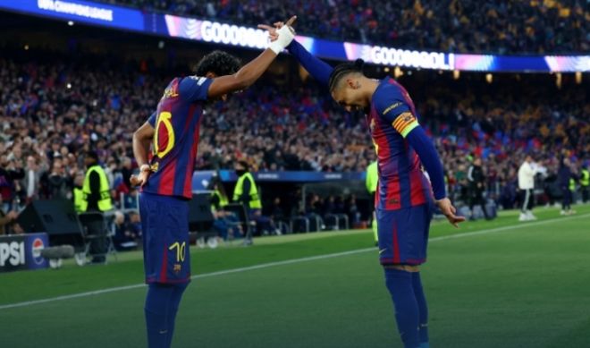 第72分钟,拉菲尼亚在禁区里被对手送礼,再拿一分巴萨7-2。