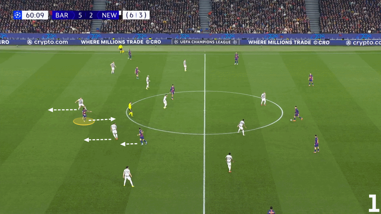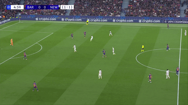 周三对阵纽卡一役,巴萨也采用了同款战术拆解对手防线。