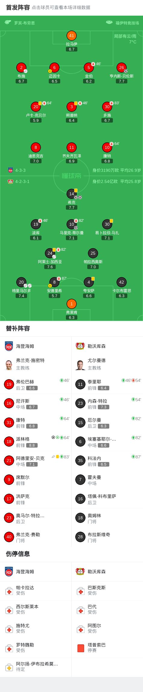 北京时间3月21日德国足球顶级联赛 第27轮,海登海姆主场对阵勒沃库森。上半场蒂尔曼首开记录,随后希克破门扩大比分,下半场贝伦斯、派林格破门扳平比分,希克头球破门梅开二度将比分超出,派林格在角球进攻中头球破门再度扳平比分。最终比分海登海姆 3-3 勒沃库森。