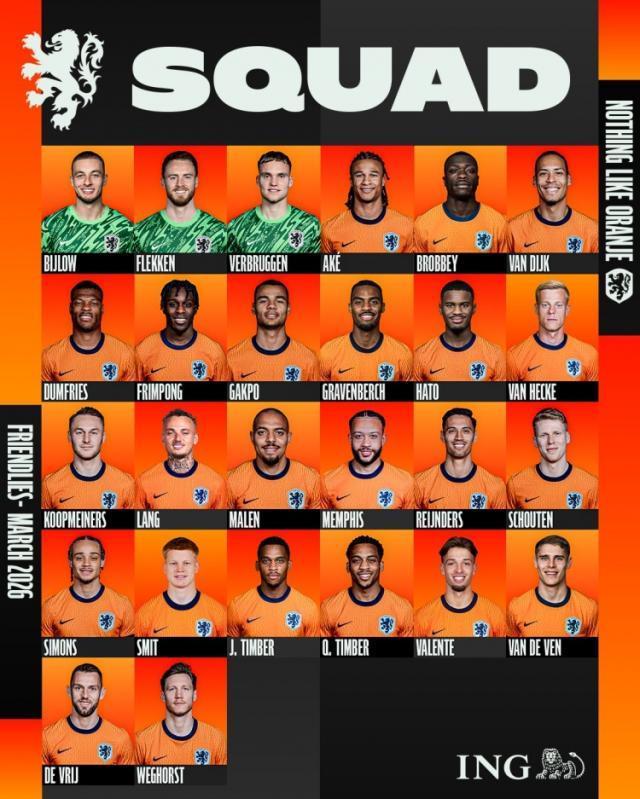 荷兰队大名单如下: