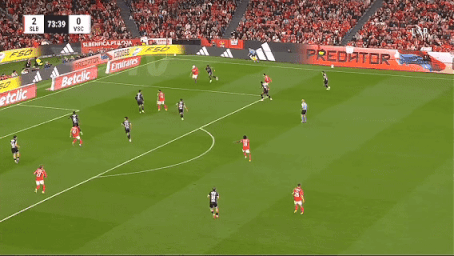 进入下半场,吉马良斯试图通过提高压迫强度来扳回局面,但这恰好给了本菲卡更多反击空间。第55分钟,里奥斯再次成为关键人物,他在中路送出直塞,帕夫利季斯前插得球后冷静推射破门,本菲卡将比分扩大为2-0。