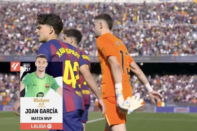 而巴萨门将霍安-加西亚本场比赛完成了4次扑救,帮助球队零封对手。