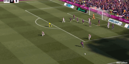 第24分钟,坎塞洛角球助攻,阿劳霍头球弹立柱入网,巴萨1-0领先!