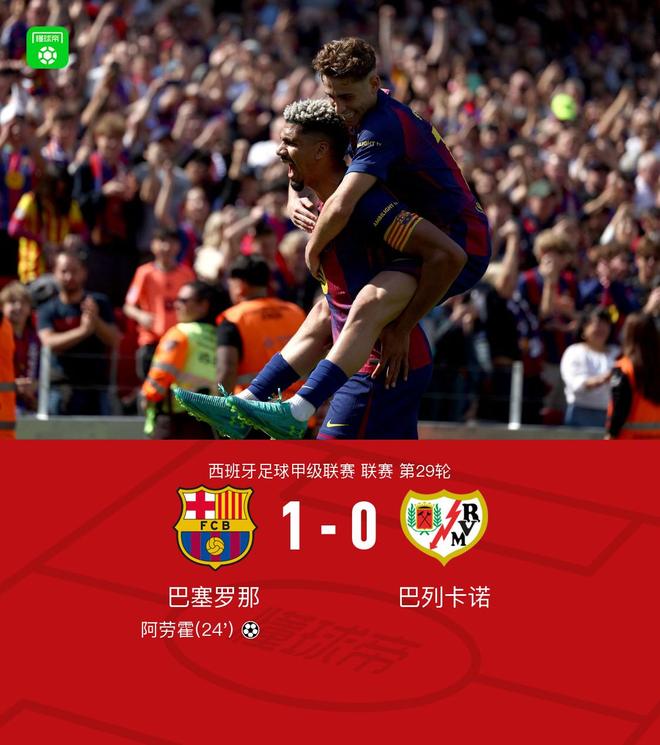 北京时间3月22日21:00,西甲第29轮继续进行,巴塞罗那坐镇Spotify诺坎普球场迎战巴列卡诺,本场主裁判为阿德里安-科尔德罗。上半场,坎塞洛角球助攻阿劳霍头槌破门。下半场,霍安-加西亚献神扑,埃斯皮诺错失良机。最终,巴萨主场1-0小胜巴列卡诺。