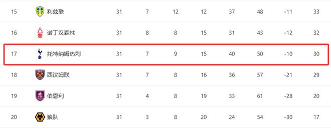 自从图多尔2月中旬接手以来,热刺在联赛中的表现持续恶化,13轮不胜,5平8负,这是俱乐部91年来最糟糕的一段联赛纪录。积分榜上,他们仅比降级区高出1分,保级警报全面拉响。图多尔的帅位也随时可能不保。
