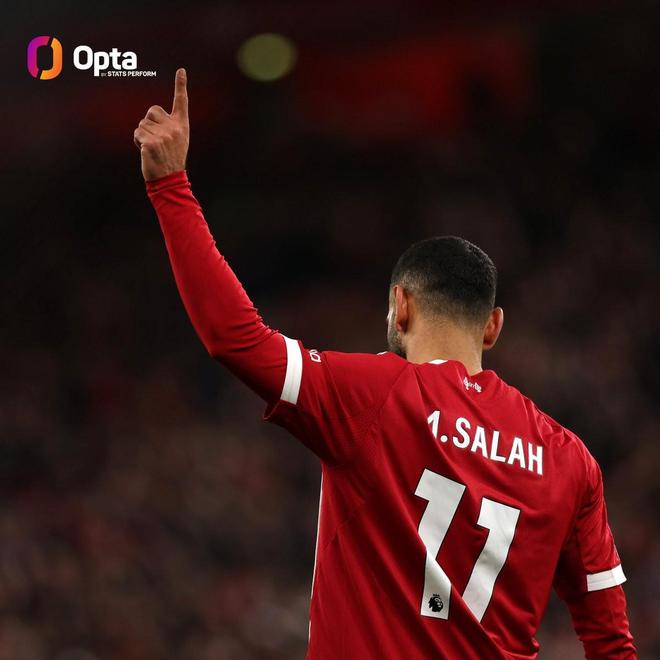 自2017-18赛季以来,萨拉赫在英超排名第一的数据包括: