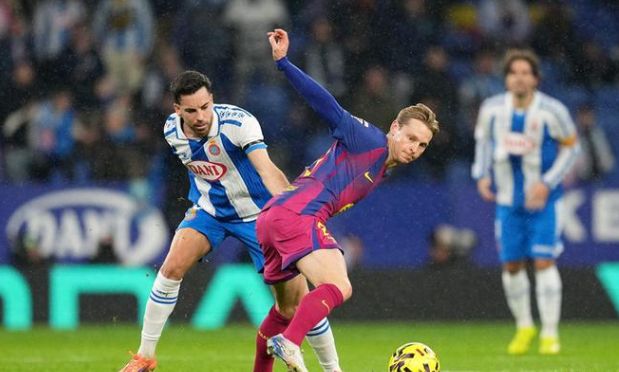 时间回到2024年4月21日,那场国家德比中,德容与巴尔韦德相撞,右脚踝严重受伤,最终被担架抬出场外,痛苦地翻滚着。