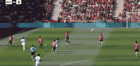 上半场结束前,马菲奥送出45度传中,莫拉内斯停球的同时晃开吕迪格,一脚低射,攻破卢宁的十指关。