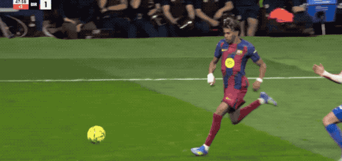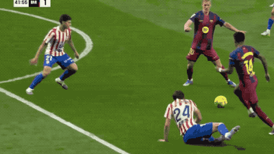 上半场补时阶段,亚马尔快速突破准备进入禁区,尼科·冈萨雷斯倒地飞铲,吃到第二张黄牌,被罚下场。