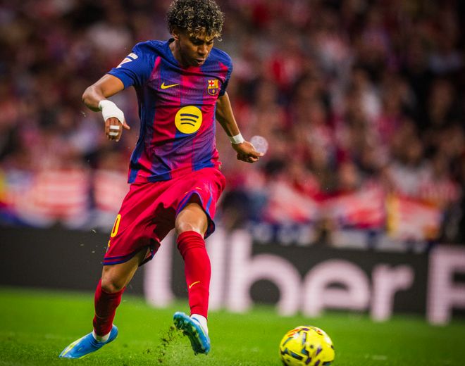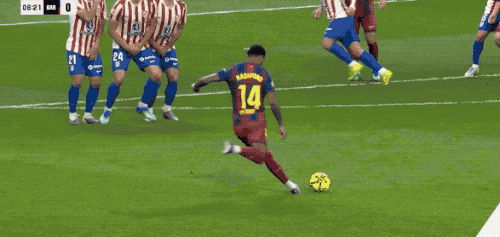 第14分钟,亚马尔巧妙过人,又送出外脚背彩虹传球,费尔明插上,倒地前勉强射门,没能命中目标。
