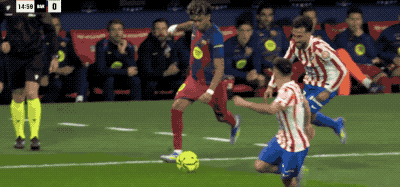 第11分钟,接到朗格莱的妙传,格列兹曼蜻蜓点水,两次触球就连过两人,但最后的射门有些仓促,没能威胁到霍安·加西亚。