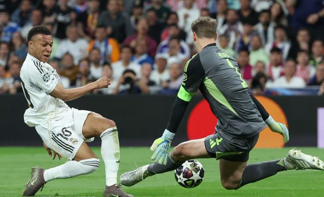 输给马略卡之后,皇马来到欧冠1/4决赛,在主场迎战拜仁慕尼黑,结果也是1-2落败。这场比赛皇马与拜仁慕尼黑展开对攻大战。双方都有20次射门,射正次数也相差无几,差别在于诺伊尔的表现更加出色,做出9次精彩的扑救。同时拜仁慕尼黑的把握机会能力更强一些,迪亚斯和凯恩相继进球。即便姆巴佩一度缩小差距,但也无济于事。这让皇马次回合客场作战不得不背水一战。