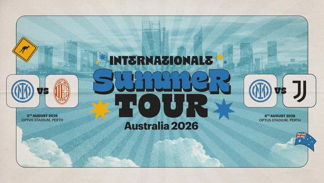 国米官方发布的公告确认,今夏他们将会首次前往澳大利亚,并在珀斯的Optus体育场与米兰和尤文进行两场友谊赛,比赛的时间分别是8月5日(对阵米兰)和8月8日(对阵尤文)。