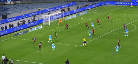第79分钟,那不勒斯左路进攻,阿利松·桑托斯盘带分球,奥利维拉跟进下底传中,门前米兰后卫阿特卡梅解围没顶远,后点波利塔诺跟进小角度破门,打进全场唯一进球。