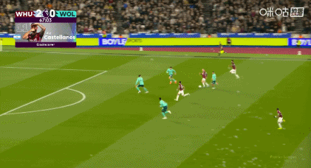 第68分钟,2分钟2球!卡斯特利亚诺斯梅开二度,西汉姆联3-0