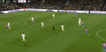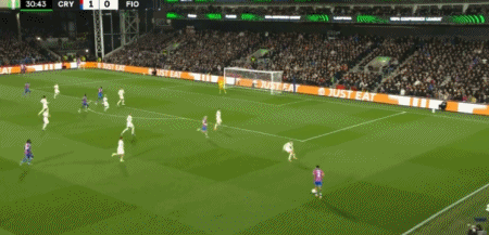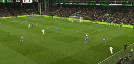 第90分钟,镰田大地传中,萨尔头球破门再下一城,水晶宫3-0佛罗伦萨